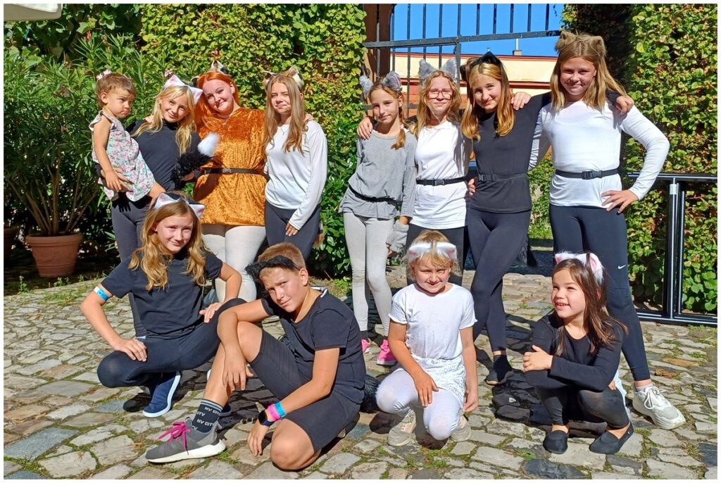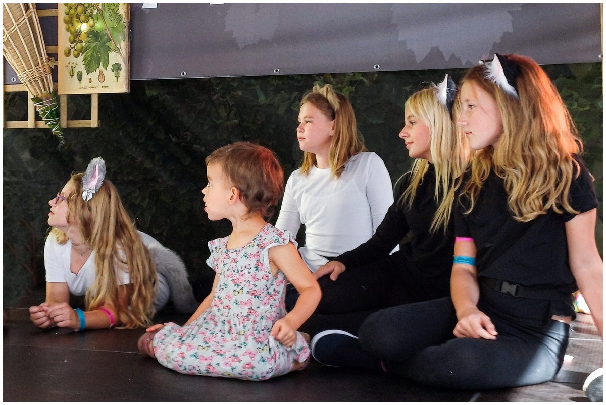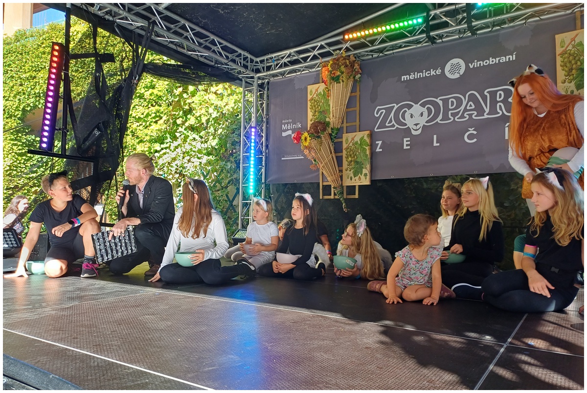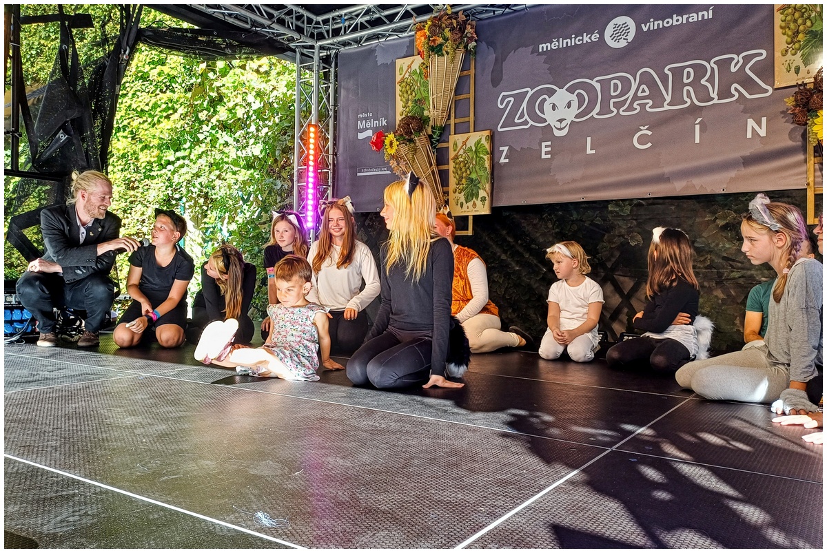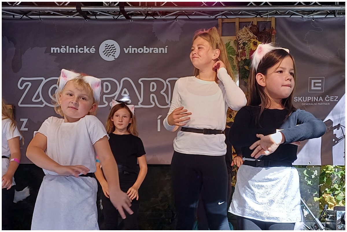 Vystoupení dětí z připravovaného muzikálu Kocourek Modroočko na Zámecké scéně Mělnického vinobraní.