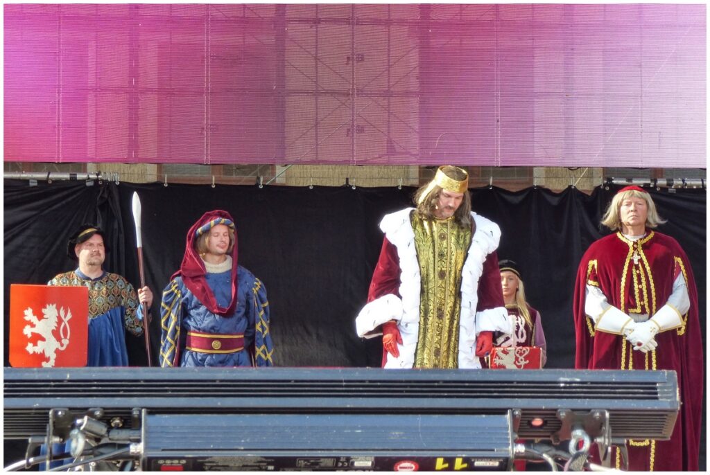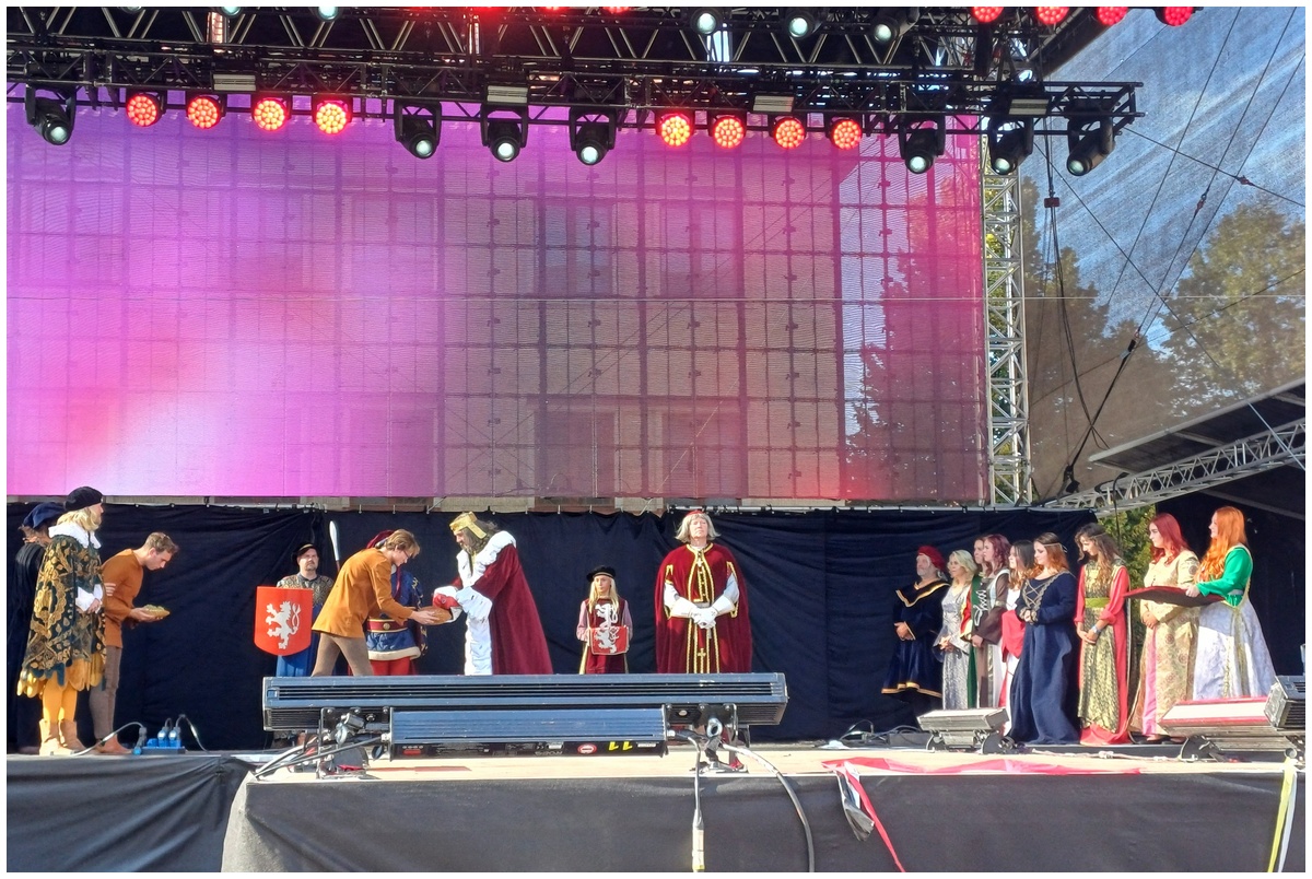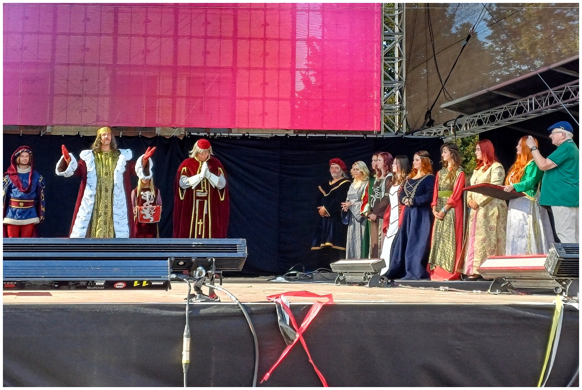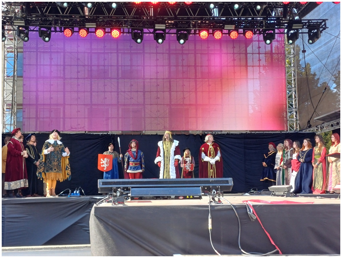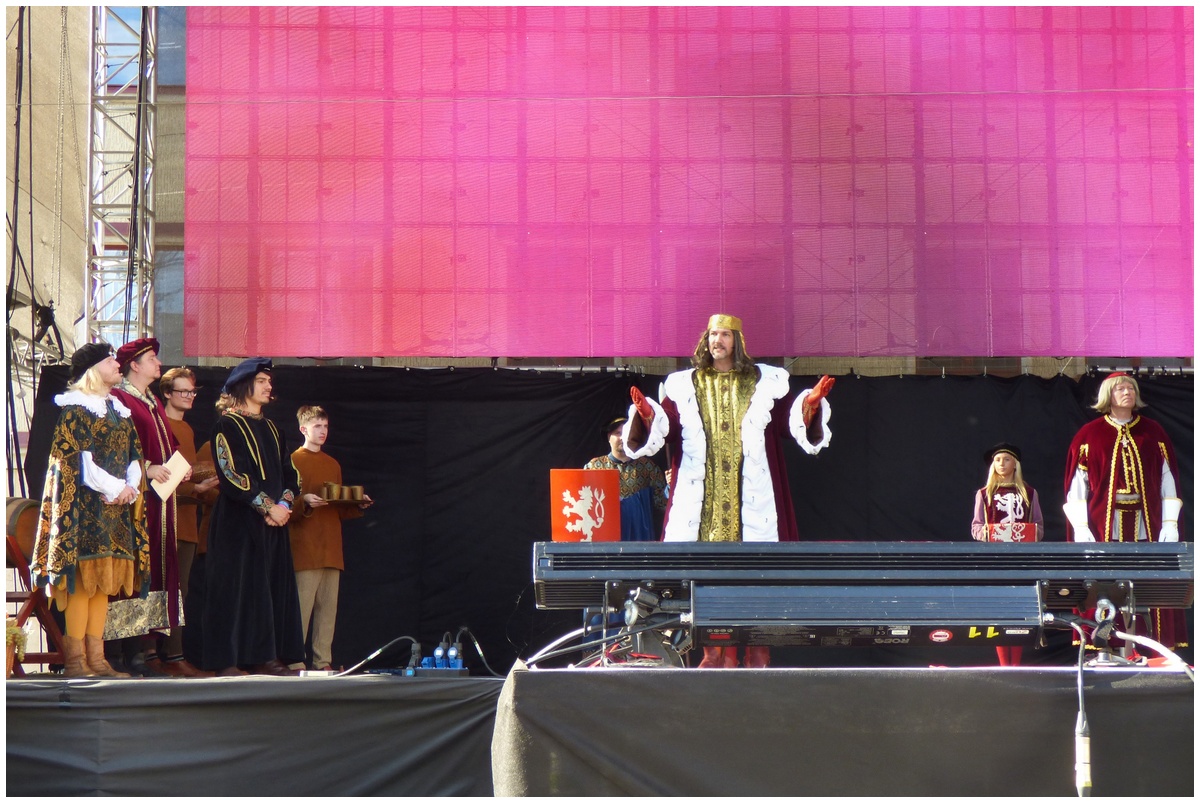 Tradiční scénka vítání krále Karla IV. na Hlavní scéně na Mělnickém vinobraní.