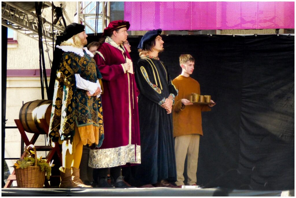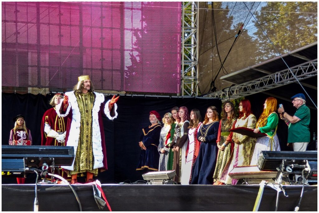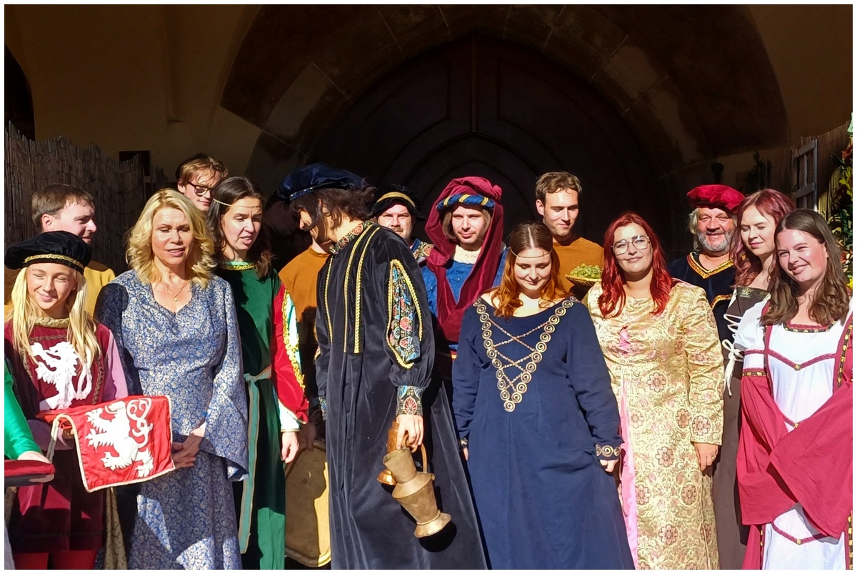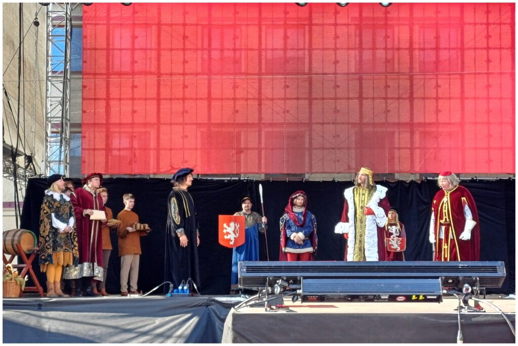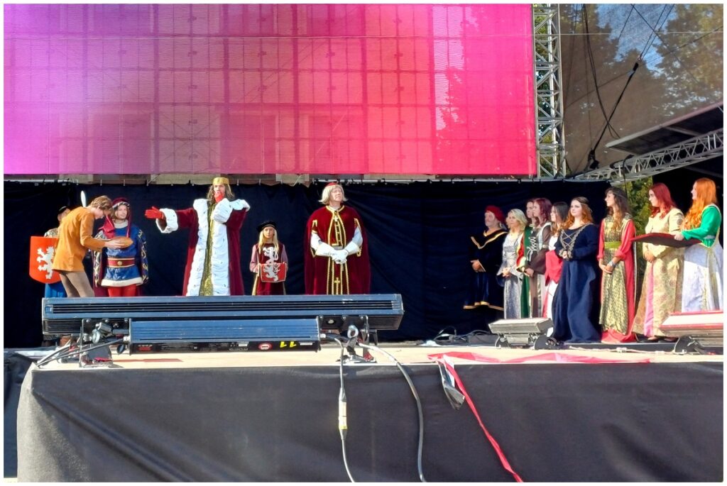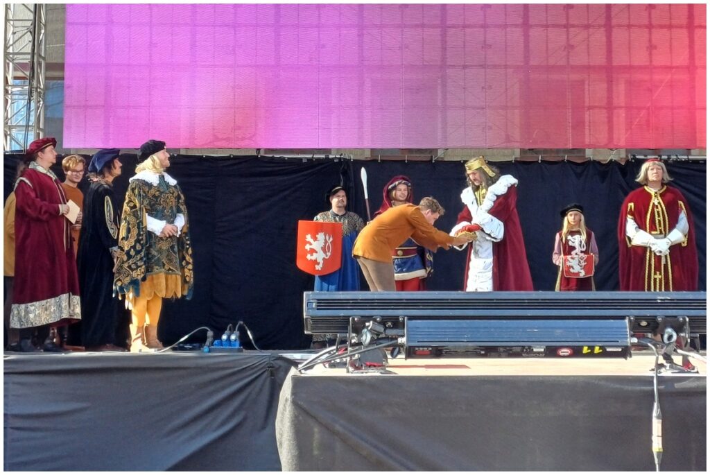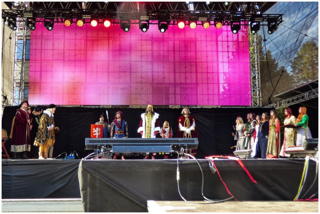 Tradiční scénka vítání krále Karla IV. na Hlavní scéně na Mělnickém vinobraní.